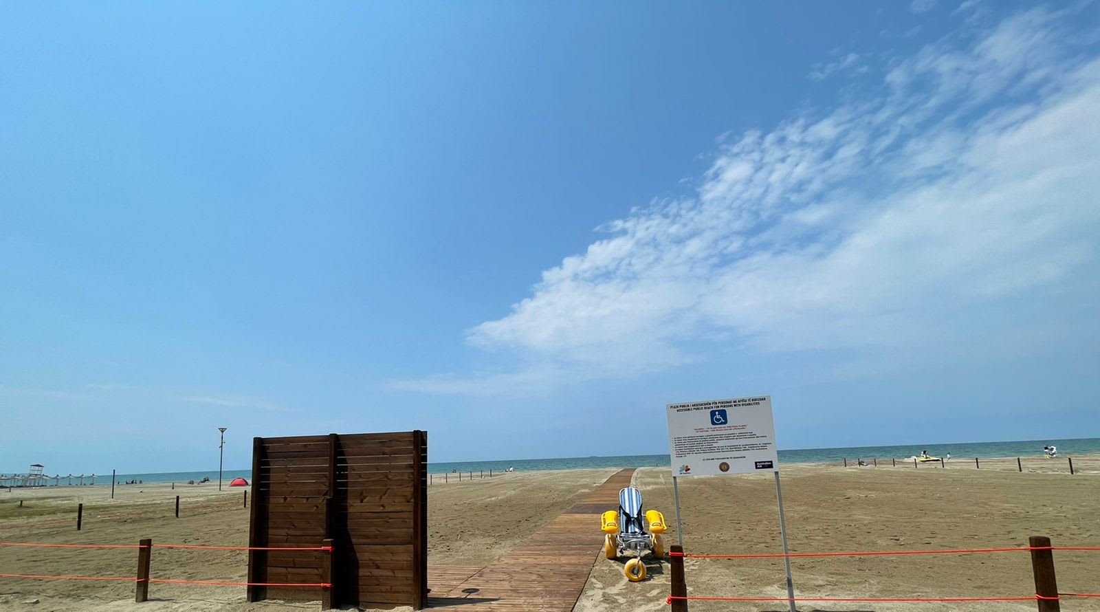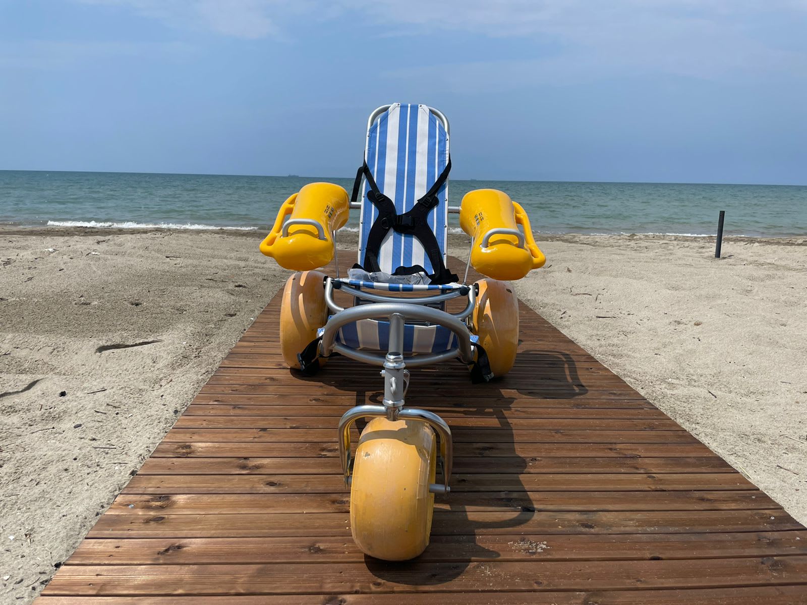 - një karrige me rrota lundruese plazhi që do të lejojë personat me aftësi të kufizuara fizike. për të shijuar detin;
