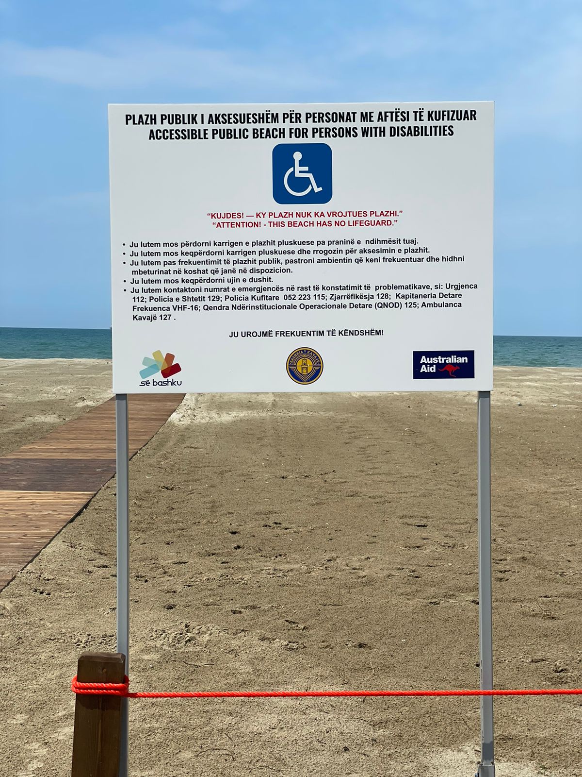 Projekti “Plazh i aksesueshëm në Kavajë/Shqipëri” mbështetet nga Qeveria Australiane dhe zbatohet nga Fondacioni “Sё Bashku”.
